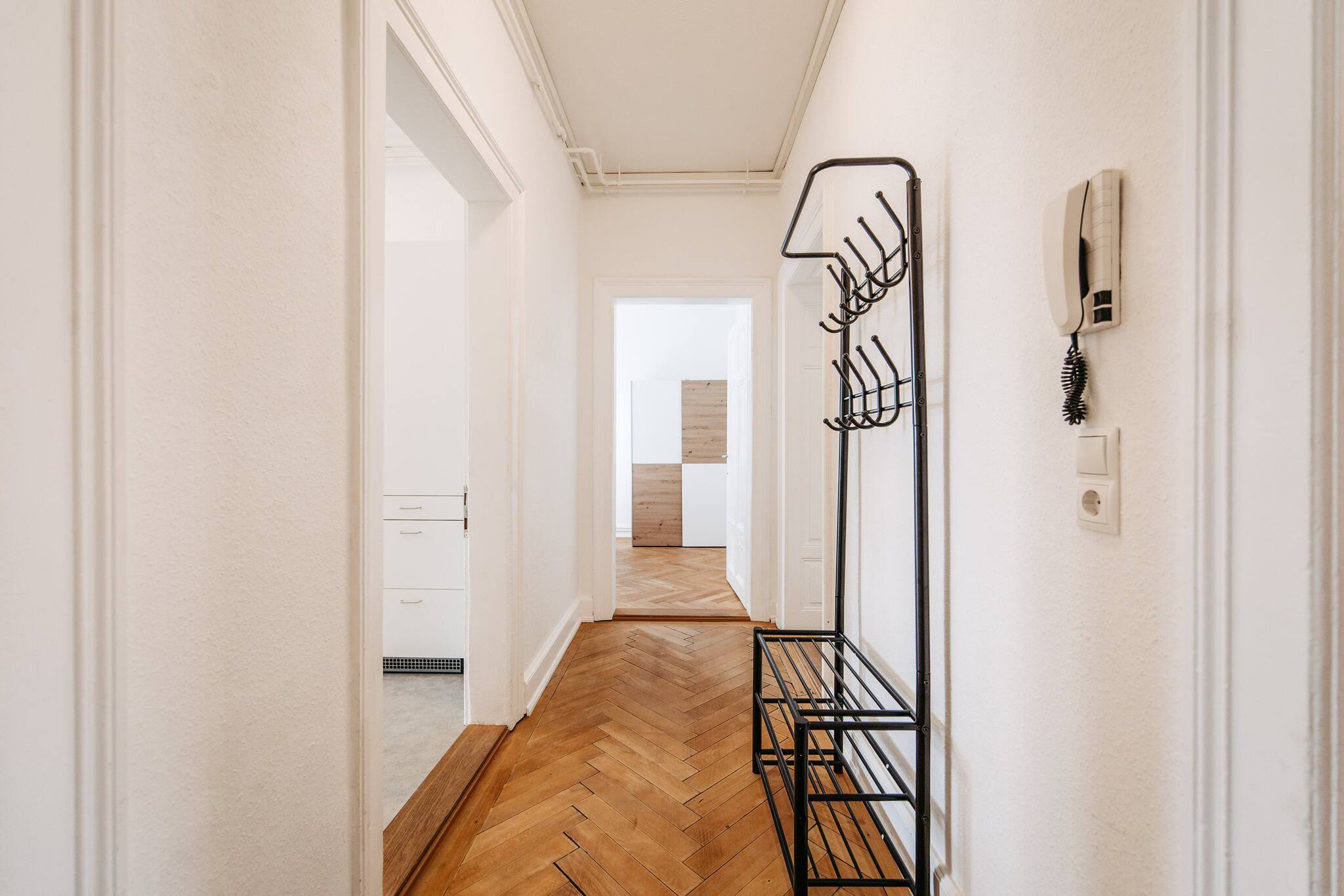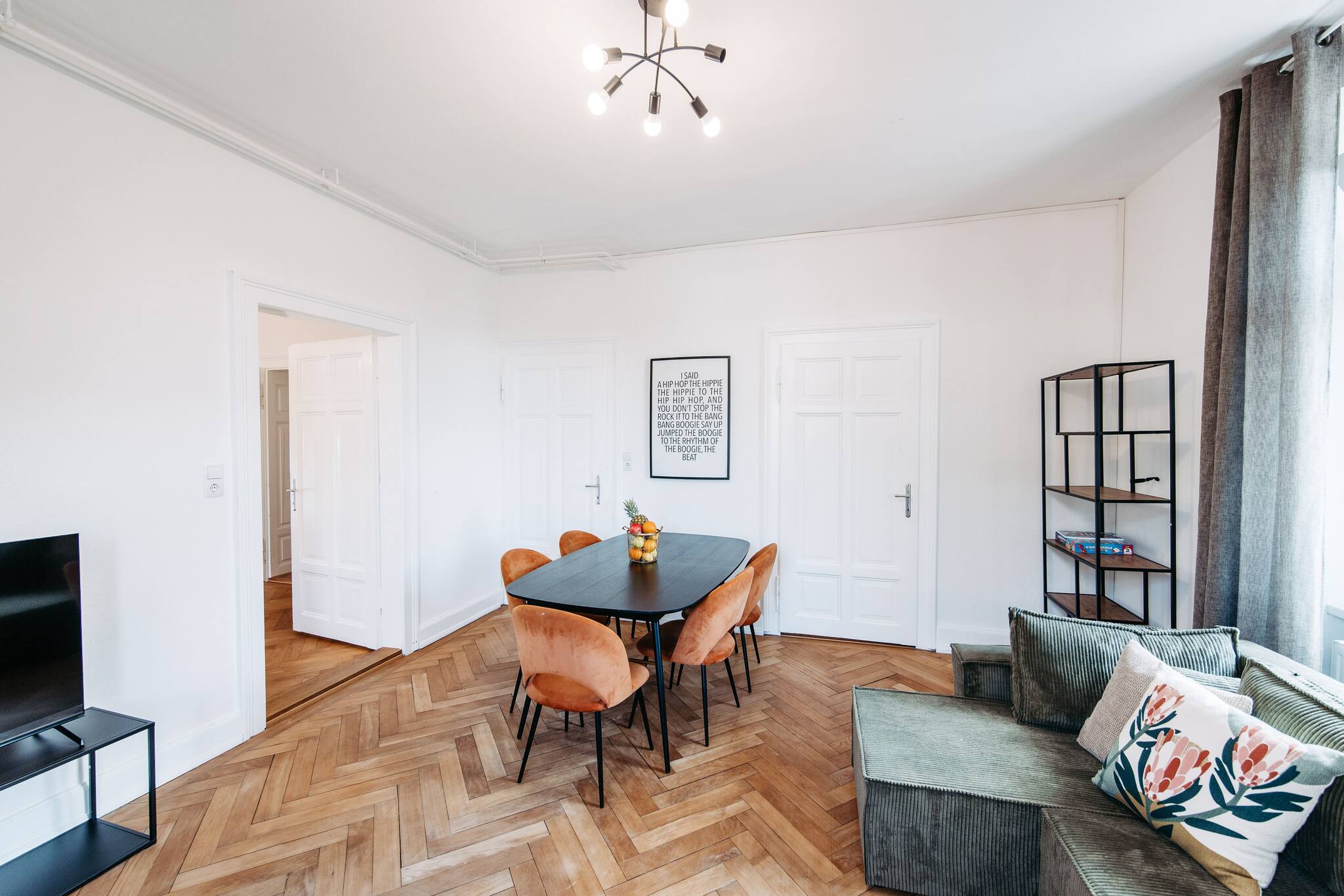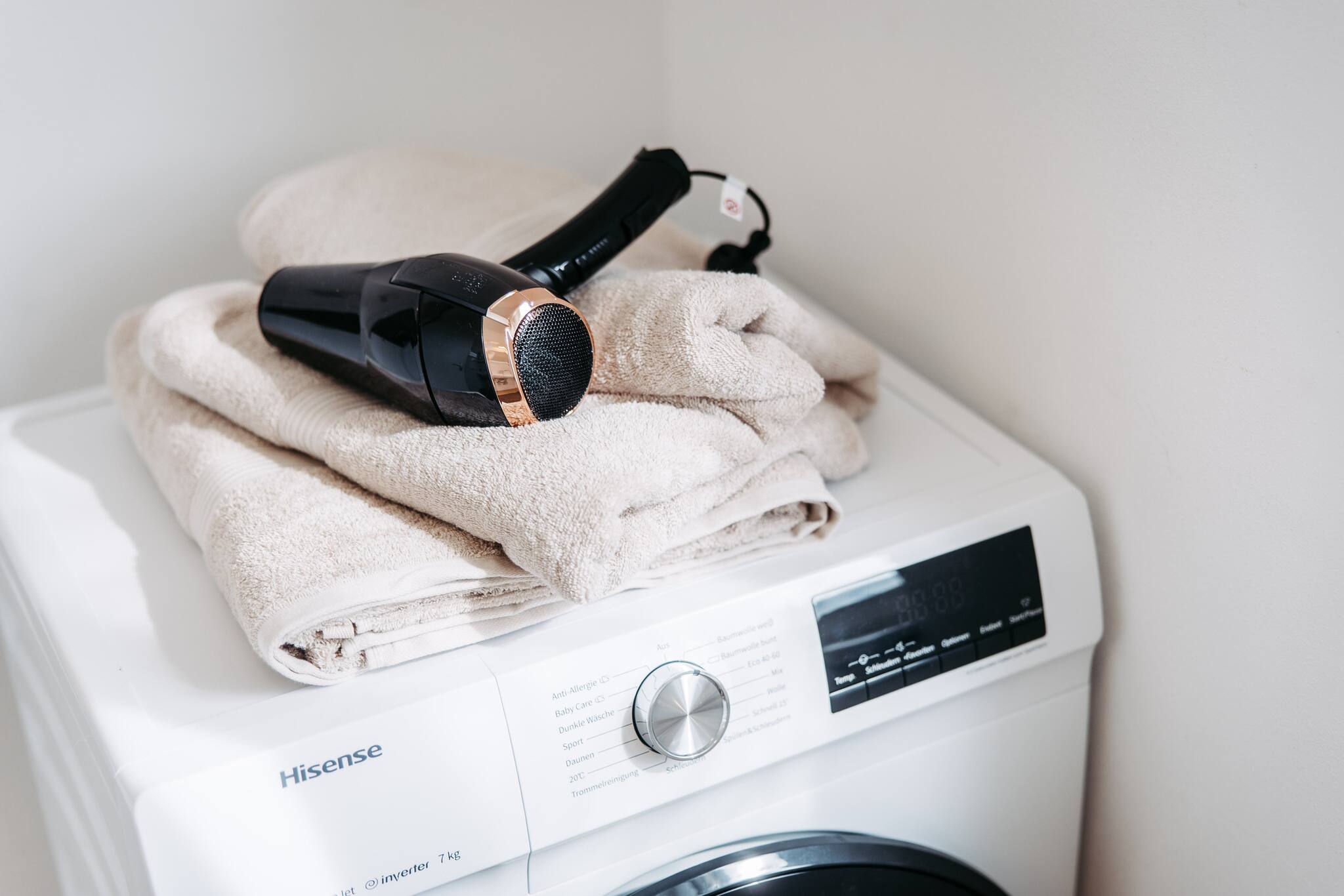 The well-equipped kitchen leaves nothing to be desired: With a refrigerator, oven, freezer, dishwasher, coffee machine, toaster, kettle, and all necessary cooking accessories, nothing stands in the way of cooking and enjoying together.
