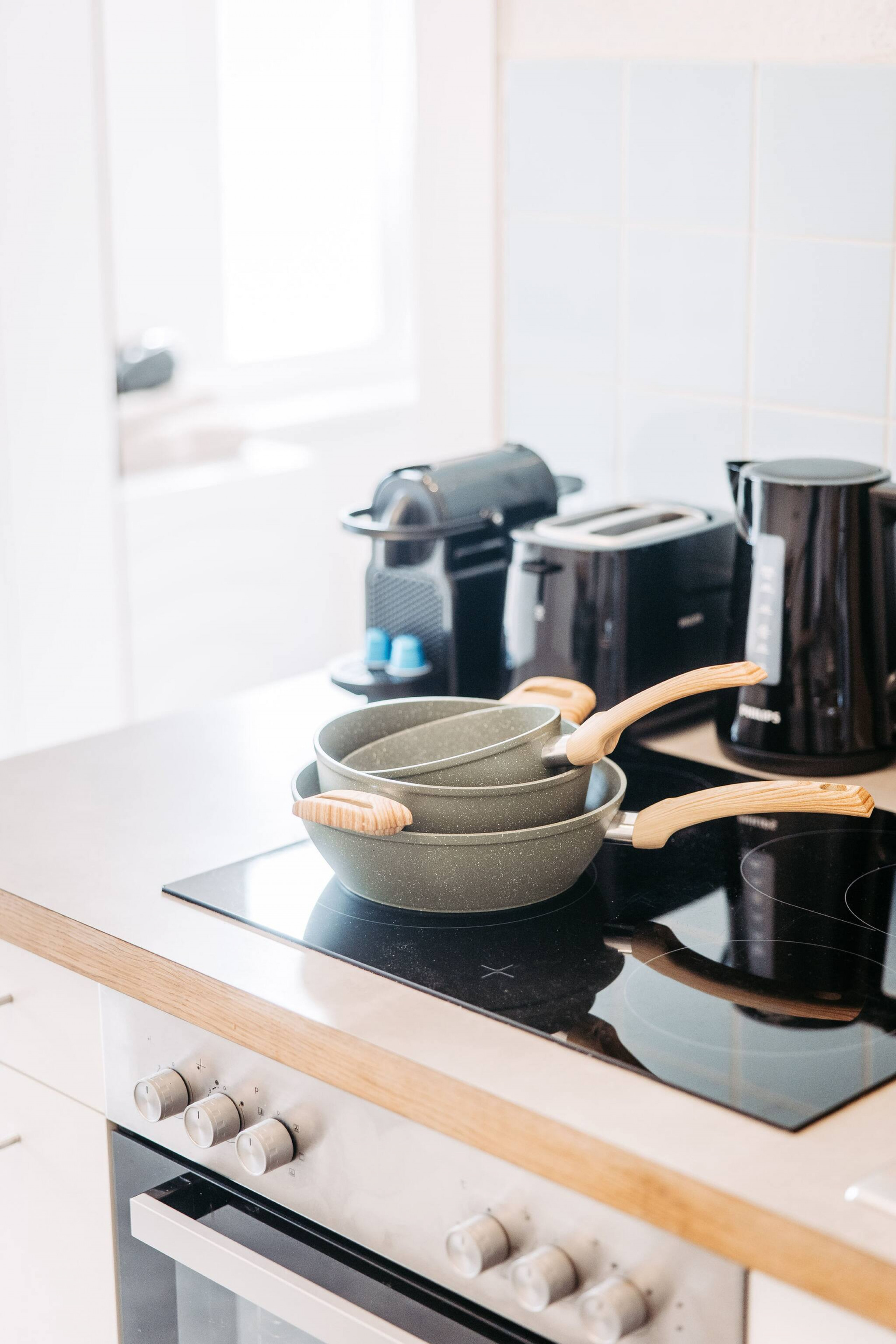 the kitchen, refrigerator, oven, dishwasher, dishes/cutlery, kitchen utensils, coffee machine, toaster, kettle and hob are provided.