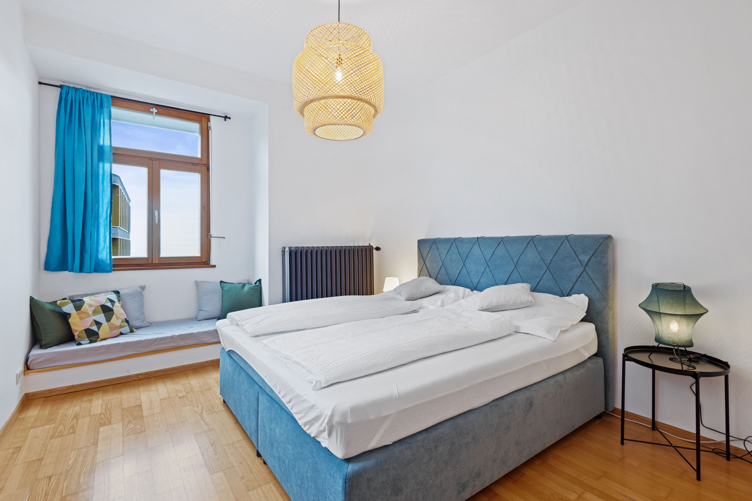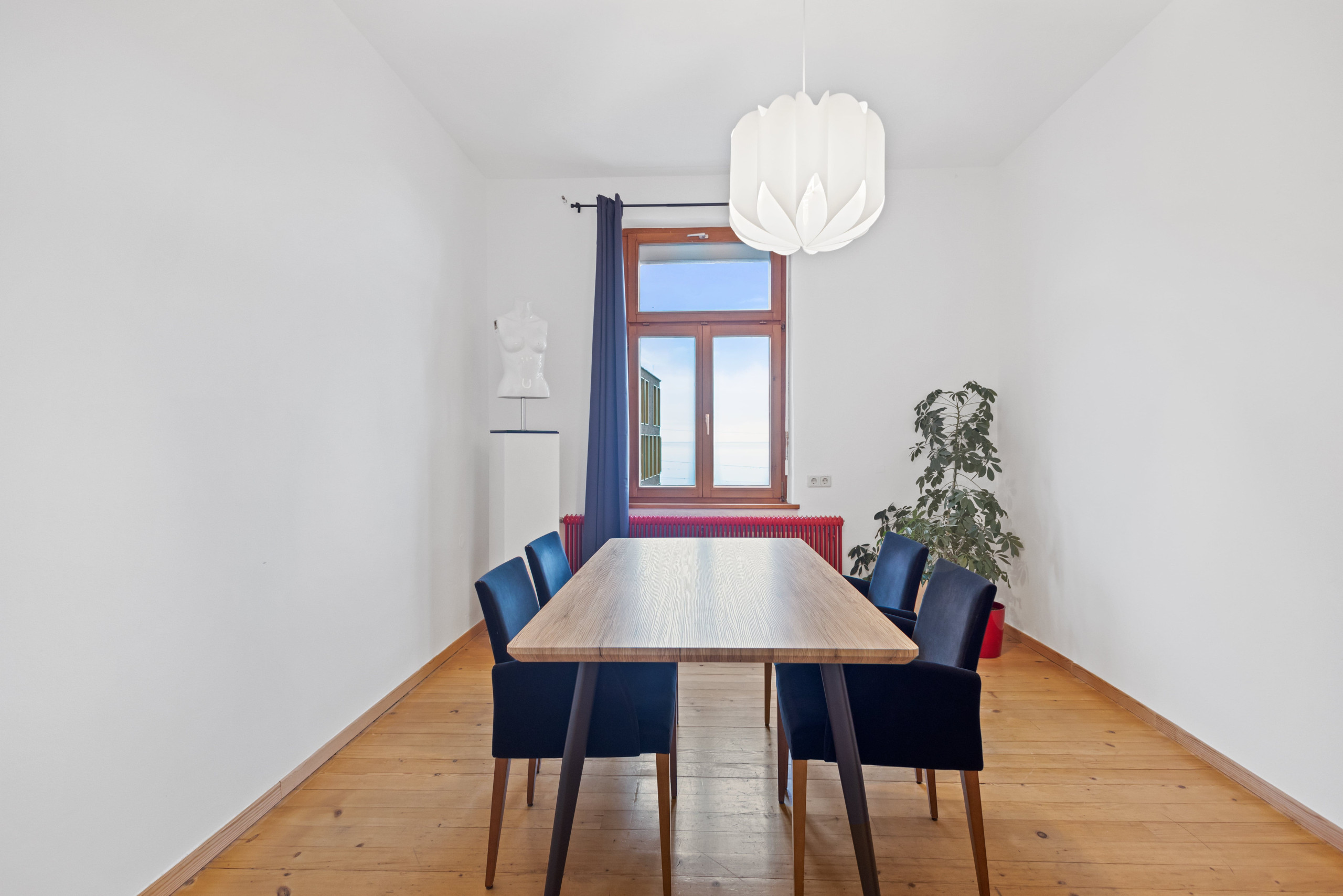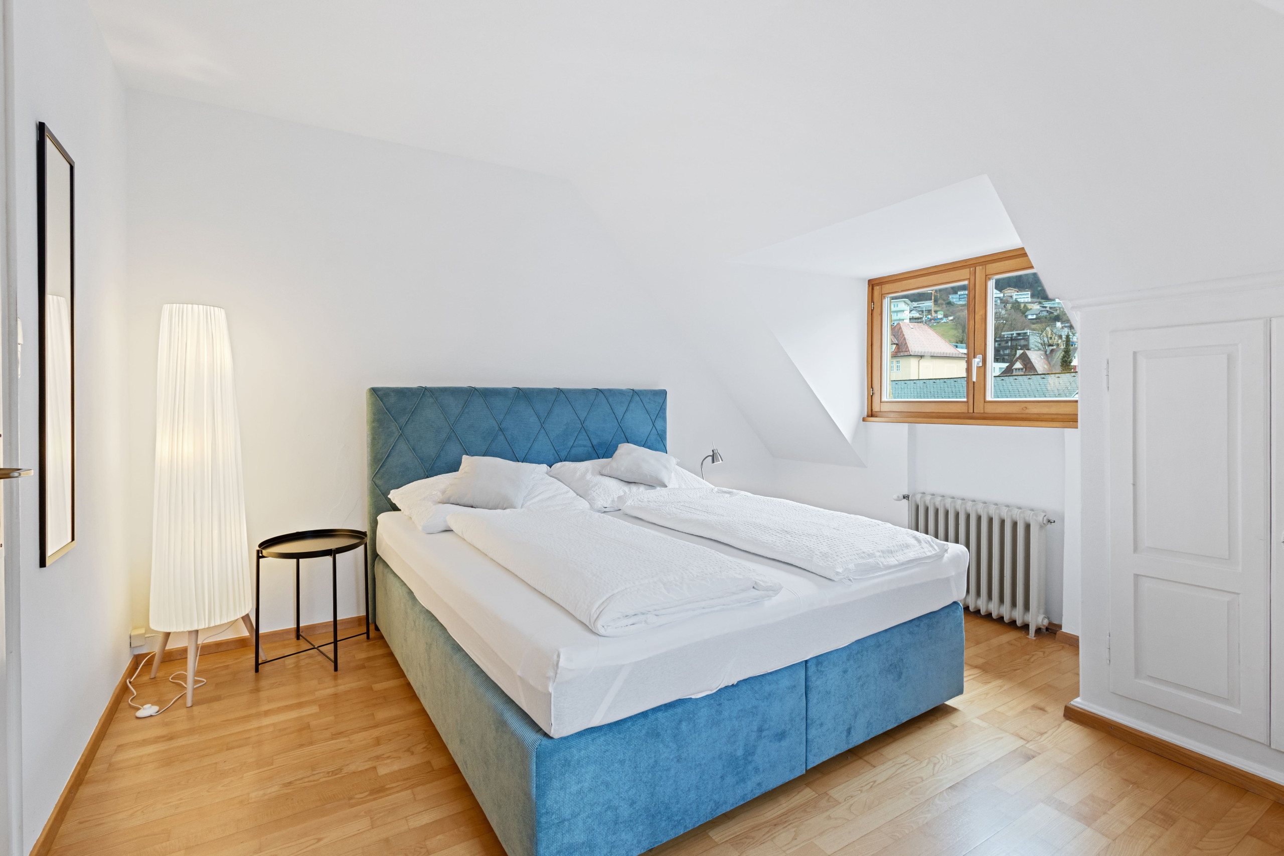 This generous 105 m² large suite on the first floor offers clear lines, plenty of space and a minimalist furnishing with charming details. Just a few steps from Lake Constance, you enjoy a beautiful lake view as well as short distances to the lakeside promenade, old town, Pfänder cable car and the railway station.