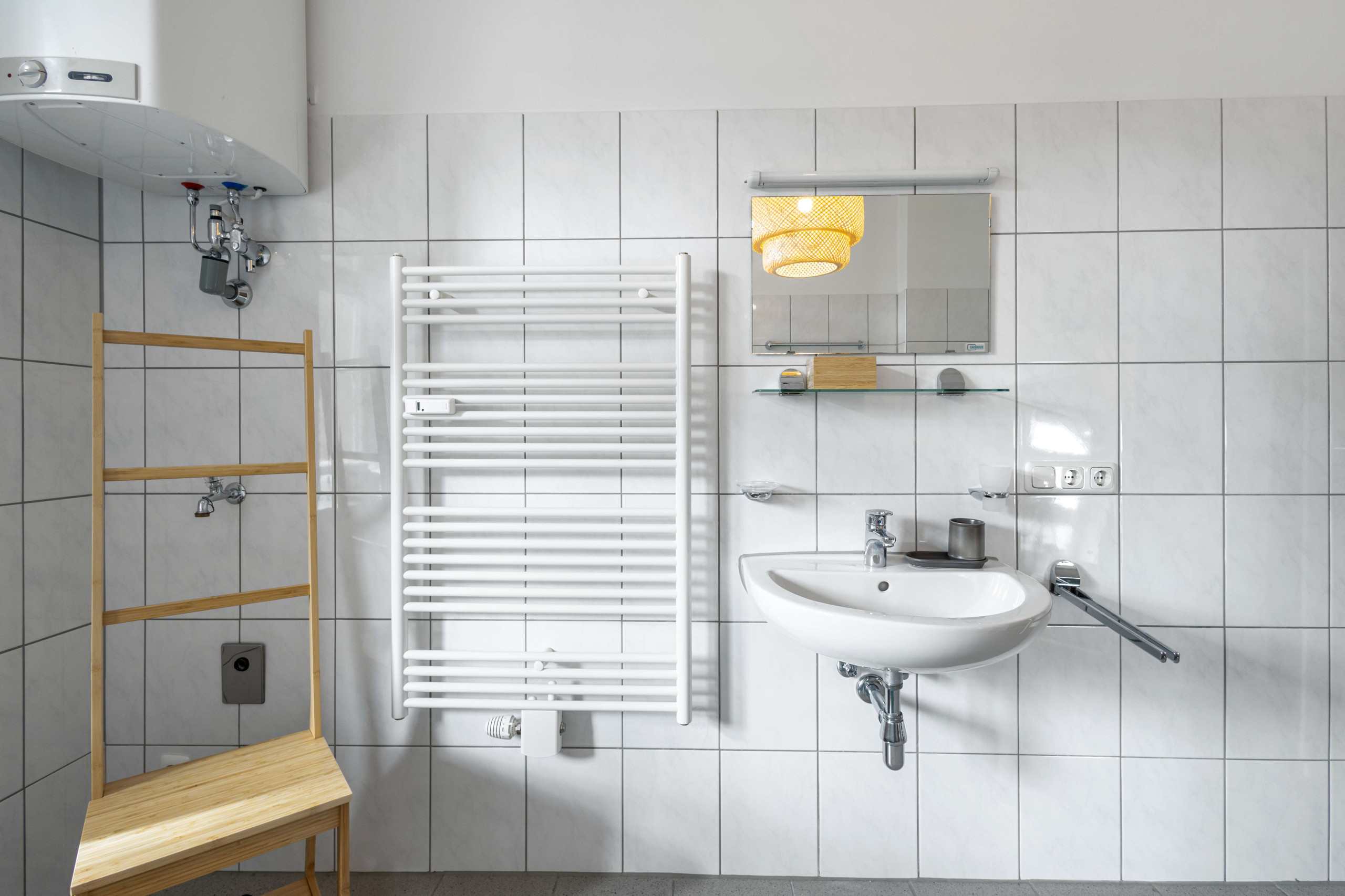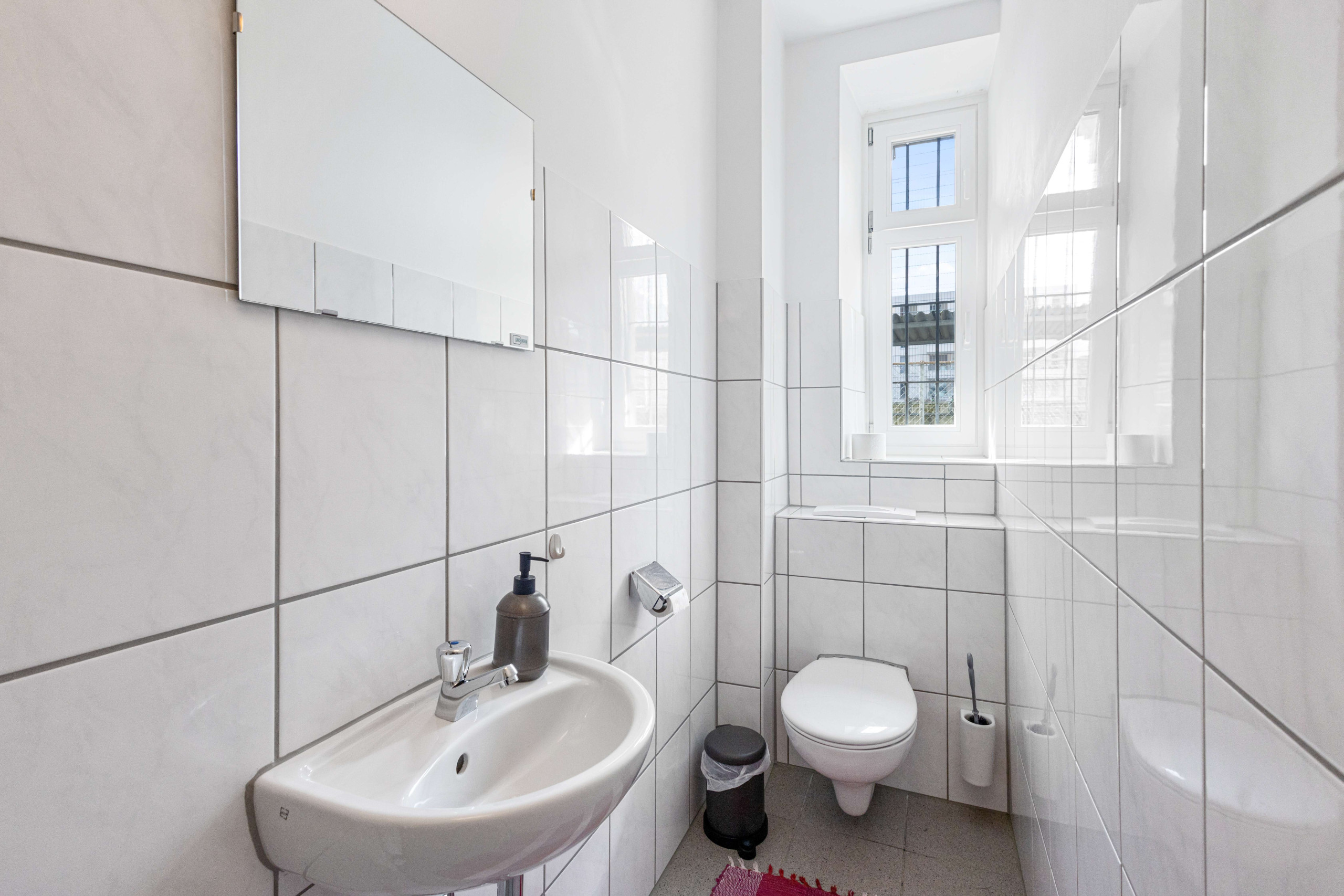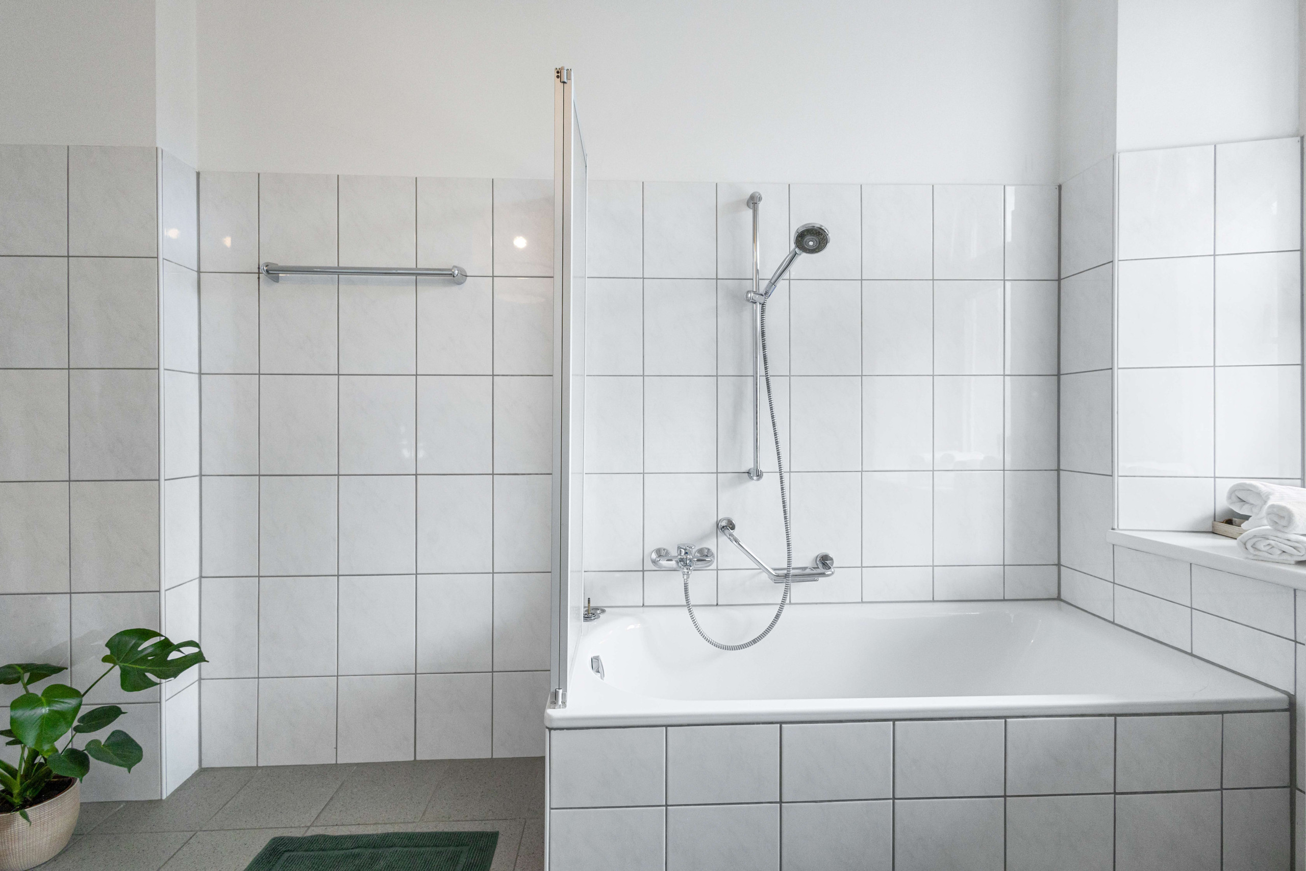 The well-equipped kitchen leaves nothing to be desired: With a refrigerator, oven, freezer, dishwasher, coffee machine, toaster, kettle, and all necessary cooking accessories, nothing stands in the way of cooking and enjoying together.