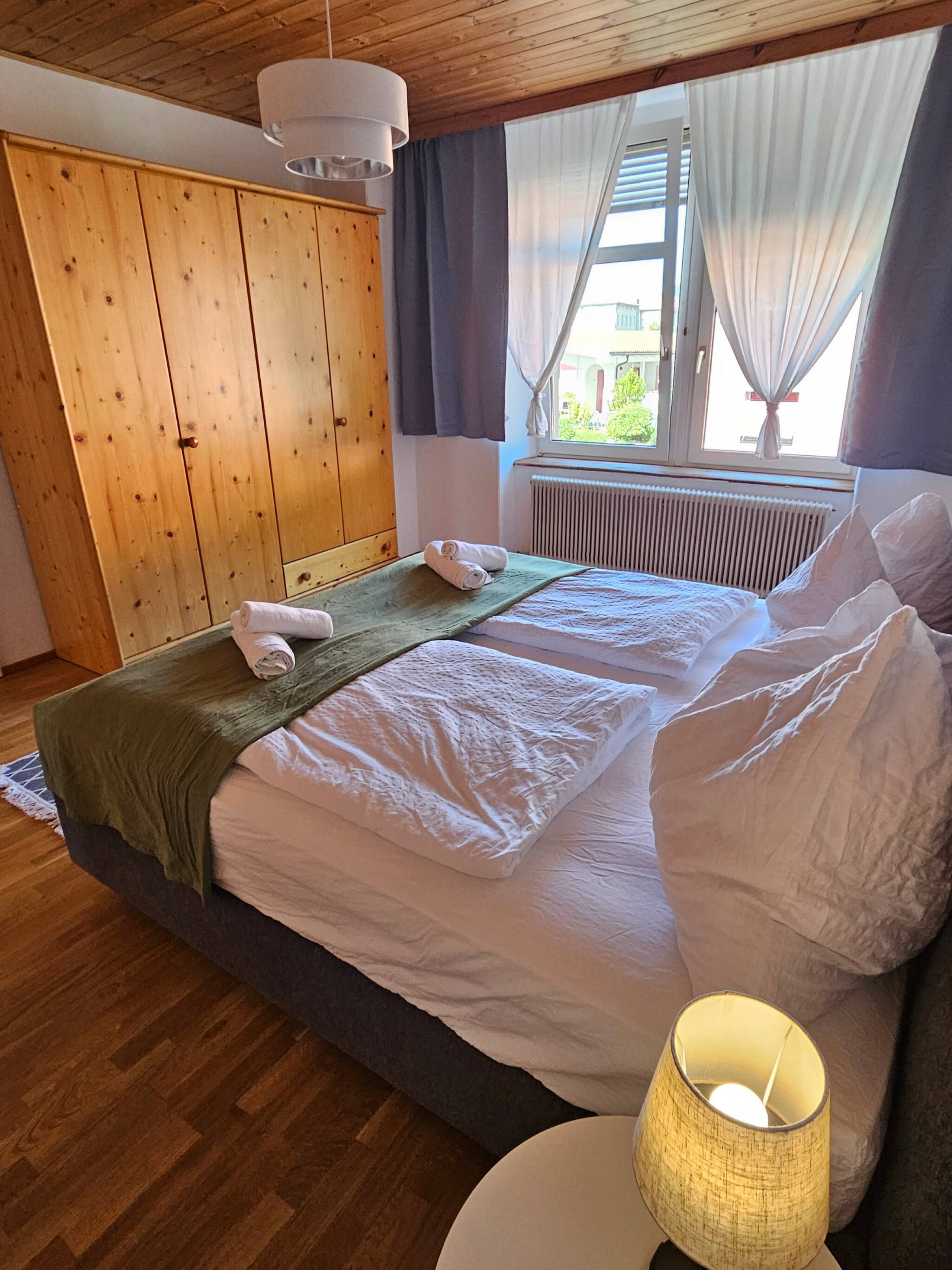 The apartment in Bregenz has 2 bedrooms and has capacity for 6 people. The apartment is cozy, is ample, and is 65 m². It has views of the mountain. The property is located 0 m from the rock beach, 50 m from Sutterlüty supermarket, 50 m from Backstube Wunderkind coffee shop, 100 m from Hafen Bregenz sand beach, 100 m from Bodensee lake, 200 m from Bregenz Hafen train station, 200 m from Bregenz Hafen metro station, 250 m from Pier69 the restaurant, 350 m from Kornmarktplatz Bregenz city, 800 m from Bregenz Bahnhof bus station, 1 km from Thalbach river, 2 km from Landeskrankenhaus Bregenz hospital, 10 km from Rheindelta nature reserve, 20 km from Alberschwende Skilifte ski slope, 35 km from Flughafen Friedrichshafen airport. The house is situated in a well connected neighborhood next to the sea.The accommodation is equipped with the following items: internet (Wi-Fi), hair dryer, central heating, open-air parking the same building, 1 TV.the kitchen, refrigerator, oven, dishwasher, dishes/cutlery, kitchen utensils, coffee machine, toaster, kettle and hob are provided.