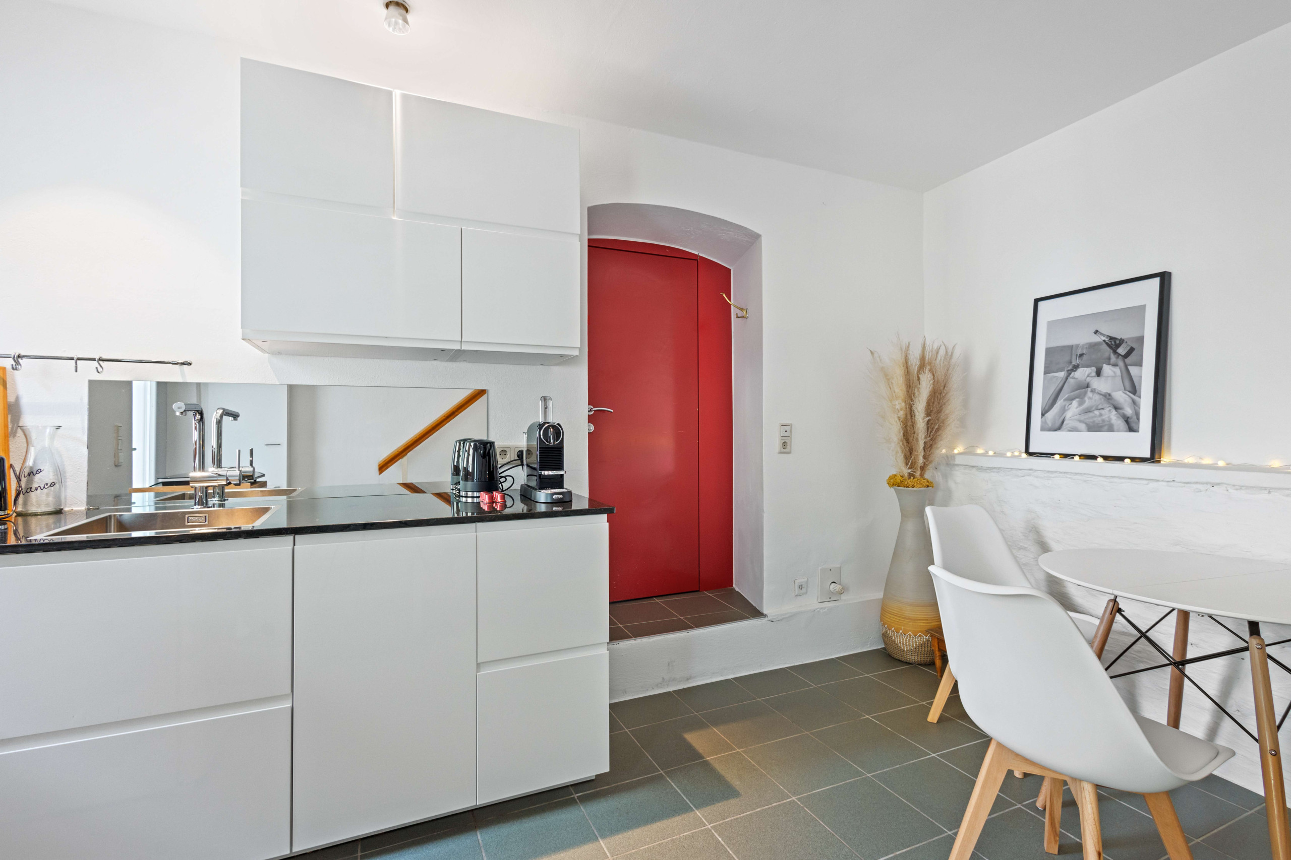 In the induction open plan kitchen, refrigerator, freezer, dishwasher, dishes/cutlery, kitchen utensils, coffee machine, toaster and kettle are provided.