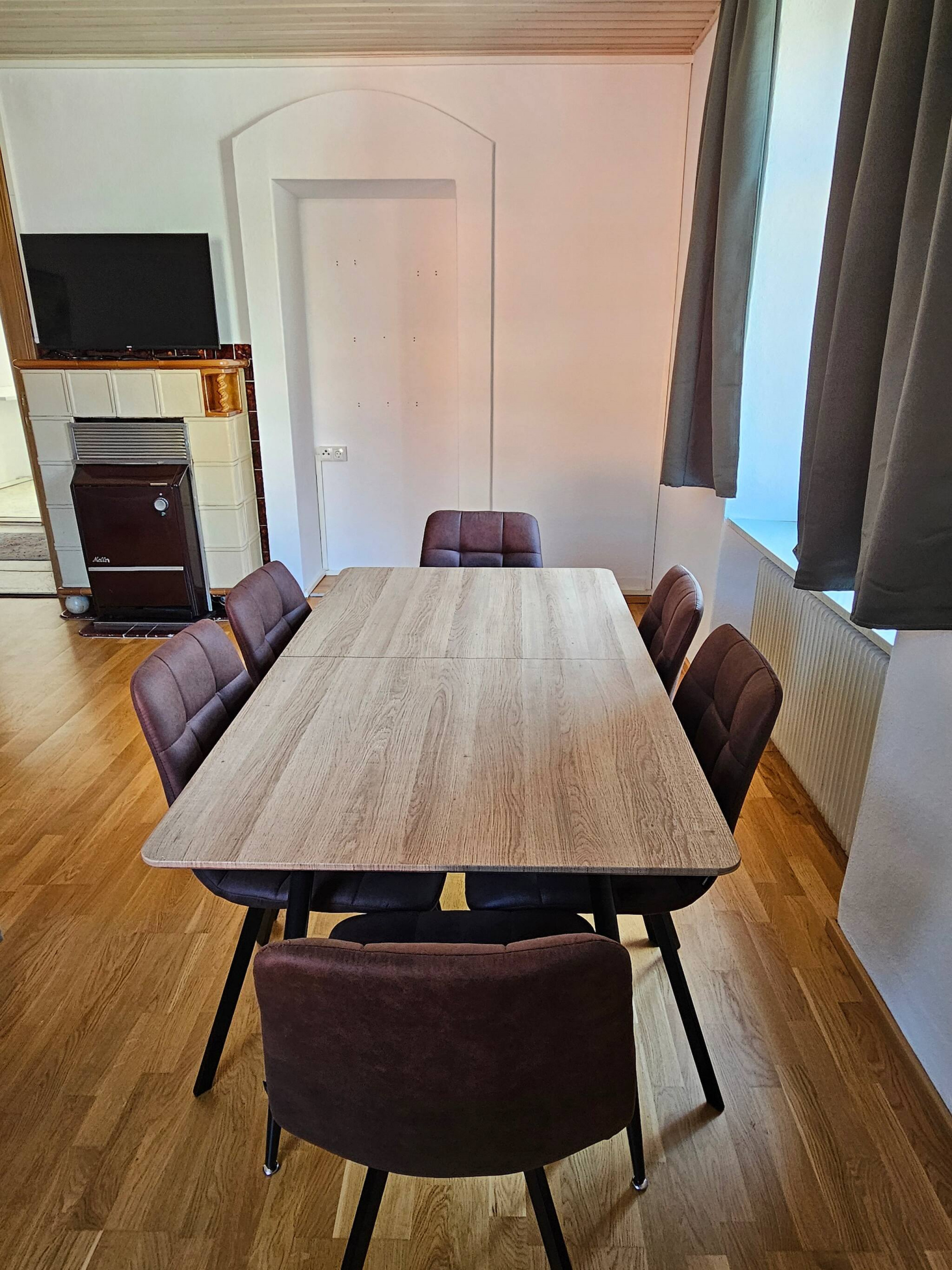Ein echtes Highlight ist der Holzofen im Esszimmer, der nicht nur an kühleren Tagen für eine angenehme Atmosphäre sorgt, sondern auch den besonderen Charakter der Suite unterstreicht.