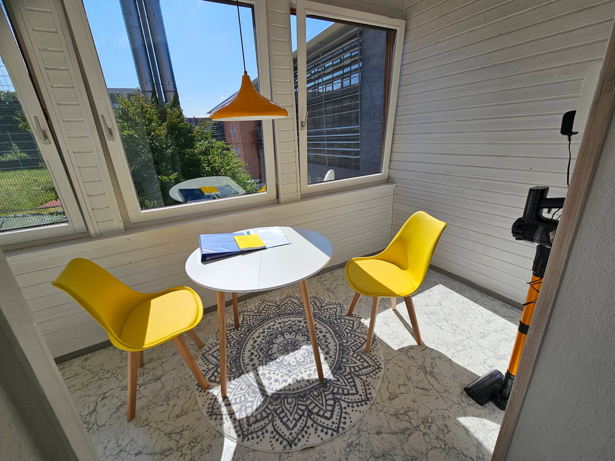 Der Balkon mit Blick auf den See und die typischen Schrägdächer der Umgebung unterstreicht die besondere Lage der Suite – ideal für eine kleine Pause an der frischen Luft.