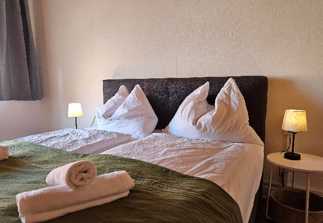 Zwei separate Schlafzimmer mit komfortablen Doppelbetten bieten ausreichend Platz für Erholung. Im hellen Wohnbereich lädt eine gemütliche Ausziehcouch zum Verweilen ein – sei es für entspannte Abende oder als zusätzliche Schlafmöglichkeit.