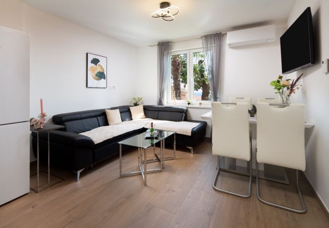WLAN, Klimaanlage, Waschmaschine, Sat-TV und ein Parkplatz nahe dem Gebäude sorgen für zusätzlichen Komfort. Perfekt für einen erholsamen Aufenthalt an der kroatischen Küste.